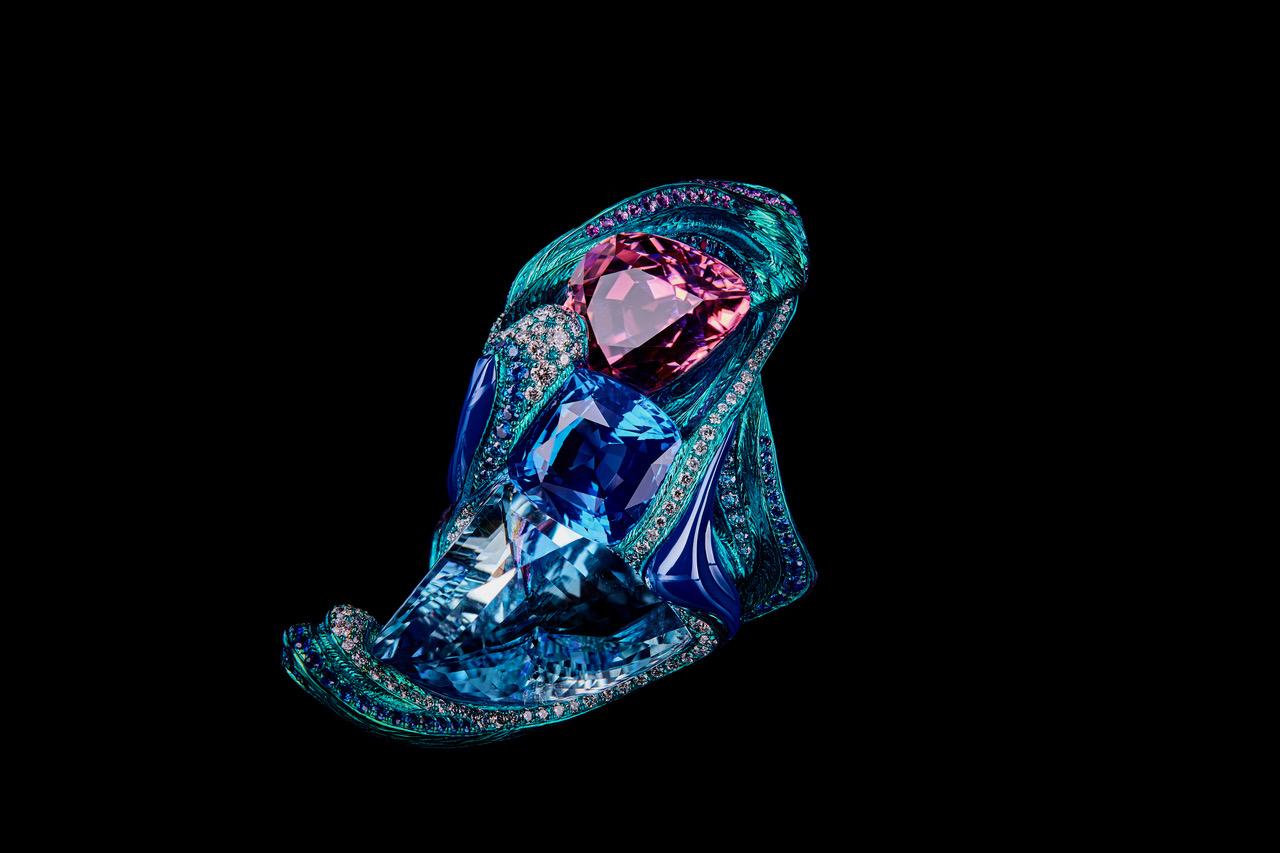Le résultat est une série de manchettes raffinées aux noms évocateurs, Ginepro, Ginestra, Cobalt, oltremare, Azzurra ou Bellavita. Par exemple, Le bracelet Ginepro est un clin d’œil à la plante éponyme qui pousse à Capri, aux baies jaune-rougeâtre dans un bouquet de feuilles vertes lancéolées.