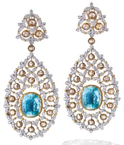 Il faut dire que ce savoir-faire artisanal presque centenaire est ici illuminé par des pierres de couleurs. En effet, ce sont de superbes boucles d’oreilles pendantes que la Maison Buccellati nous propose. Comme un cocktail scintillant où se mêle également des manchettes et pendentifs.