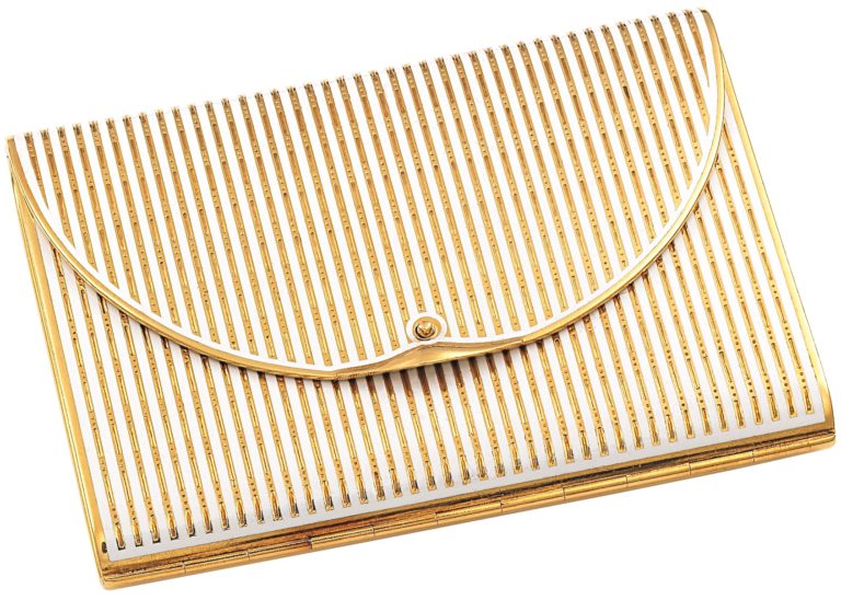 Trésor d’ingéniosité ces vanités abritent un miroir, un tube de rouge à lèvres et un poudrier miniature. Le vanity case accompagne l’émancipation des femmes, c’est l’époque des cheveux courts, des robes charleston et du maquillage. Indispensable, il se pare de perles, de diamants, d’émail …