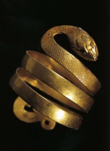 Roman civilization 1st century b.C. Goldsmith Art. Gold bracelet in the form of a snake.