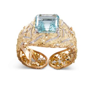 D’un autre côté la maison CHAUMET puise son inspiration dans les éléments de la nature avec Ondes & Merveilles. De fait la Maison CHAUMET invente un langage joaillier inédit où les pierres précieuses expriment toutes les nuances de la mer.