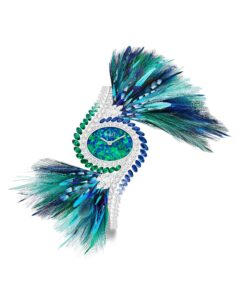 Montre Opale Noire, Diamants, Saphirs, Émeraudes, Diamants, Plumes par Nelly Saunier