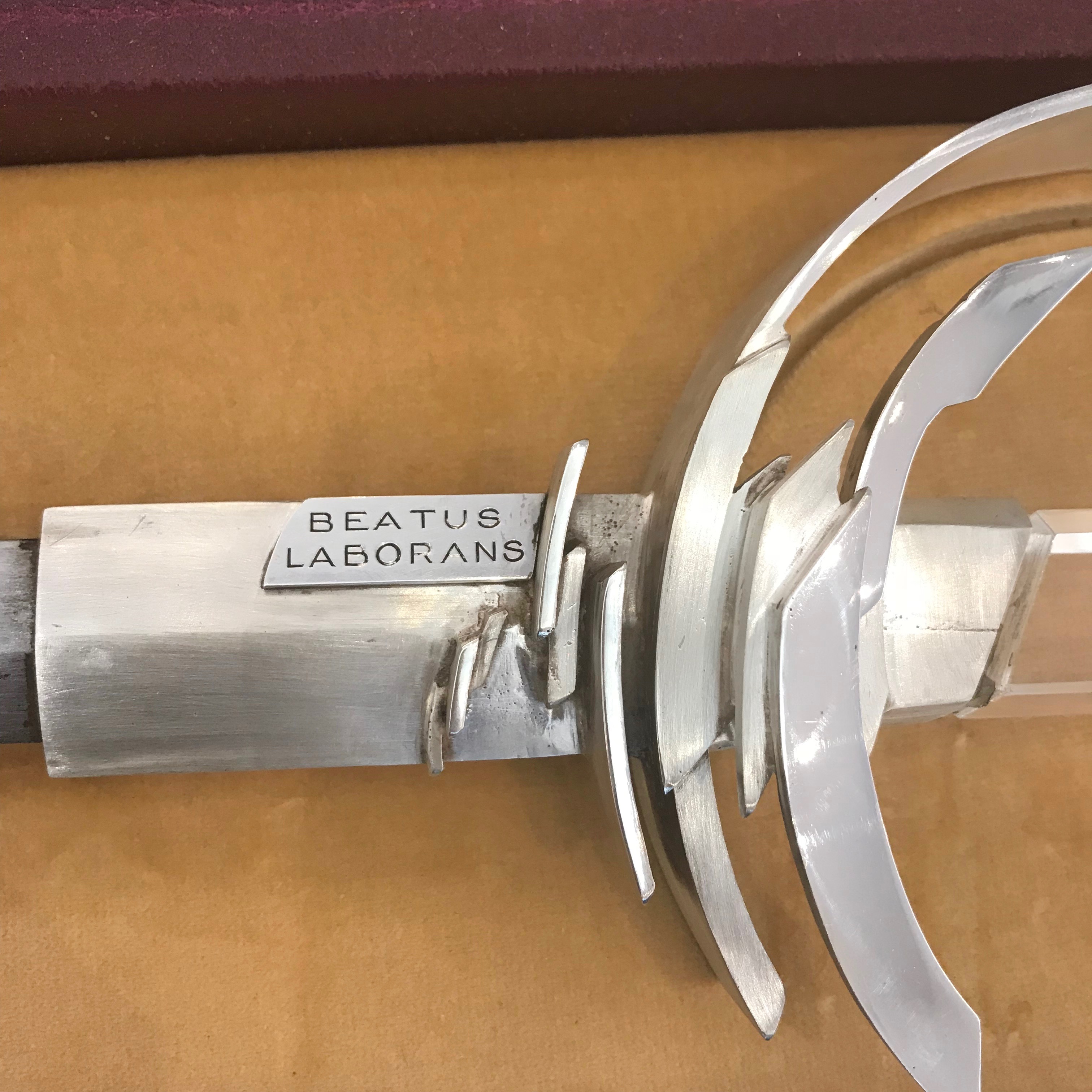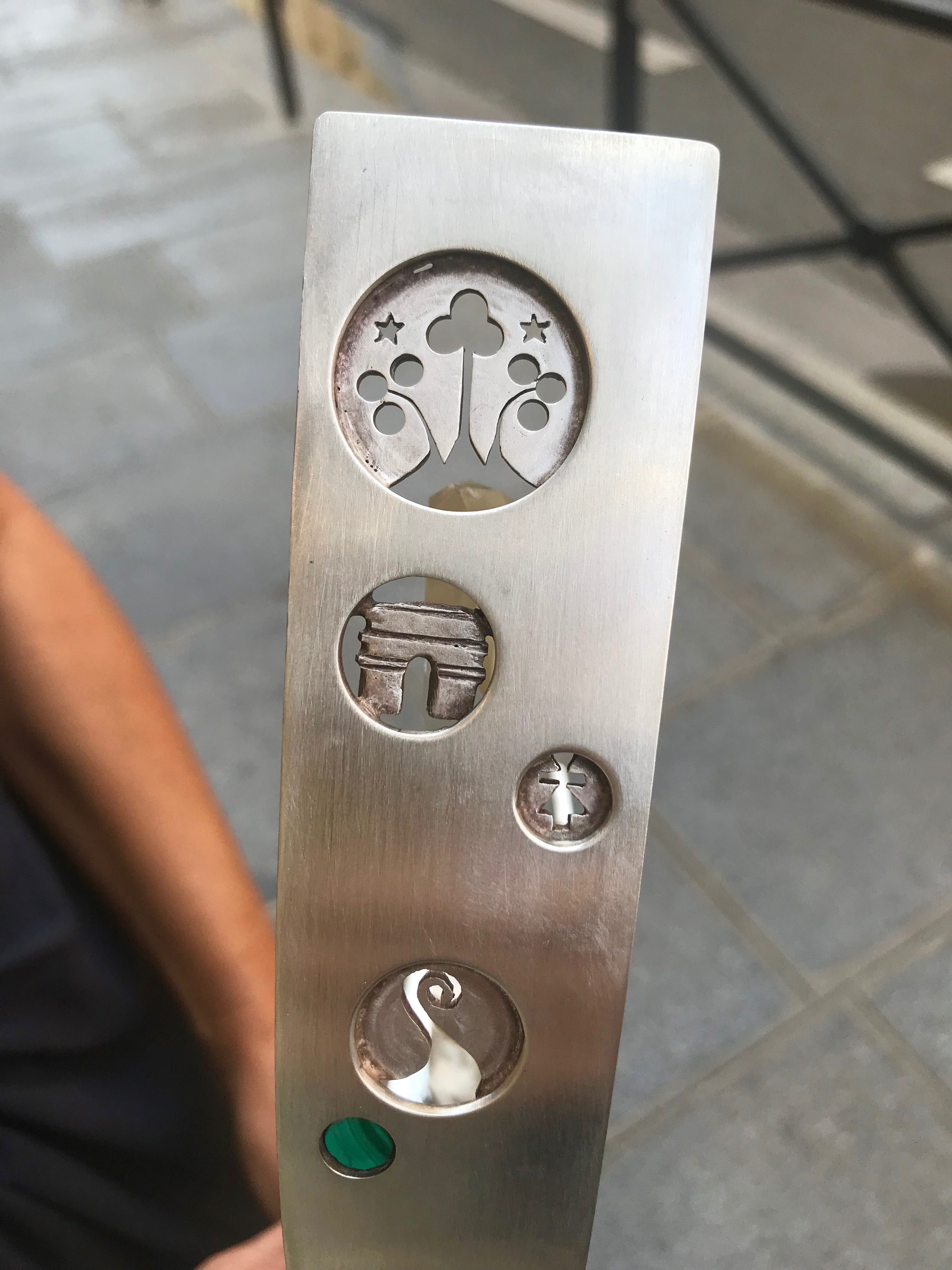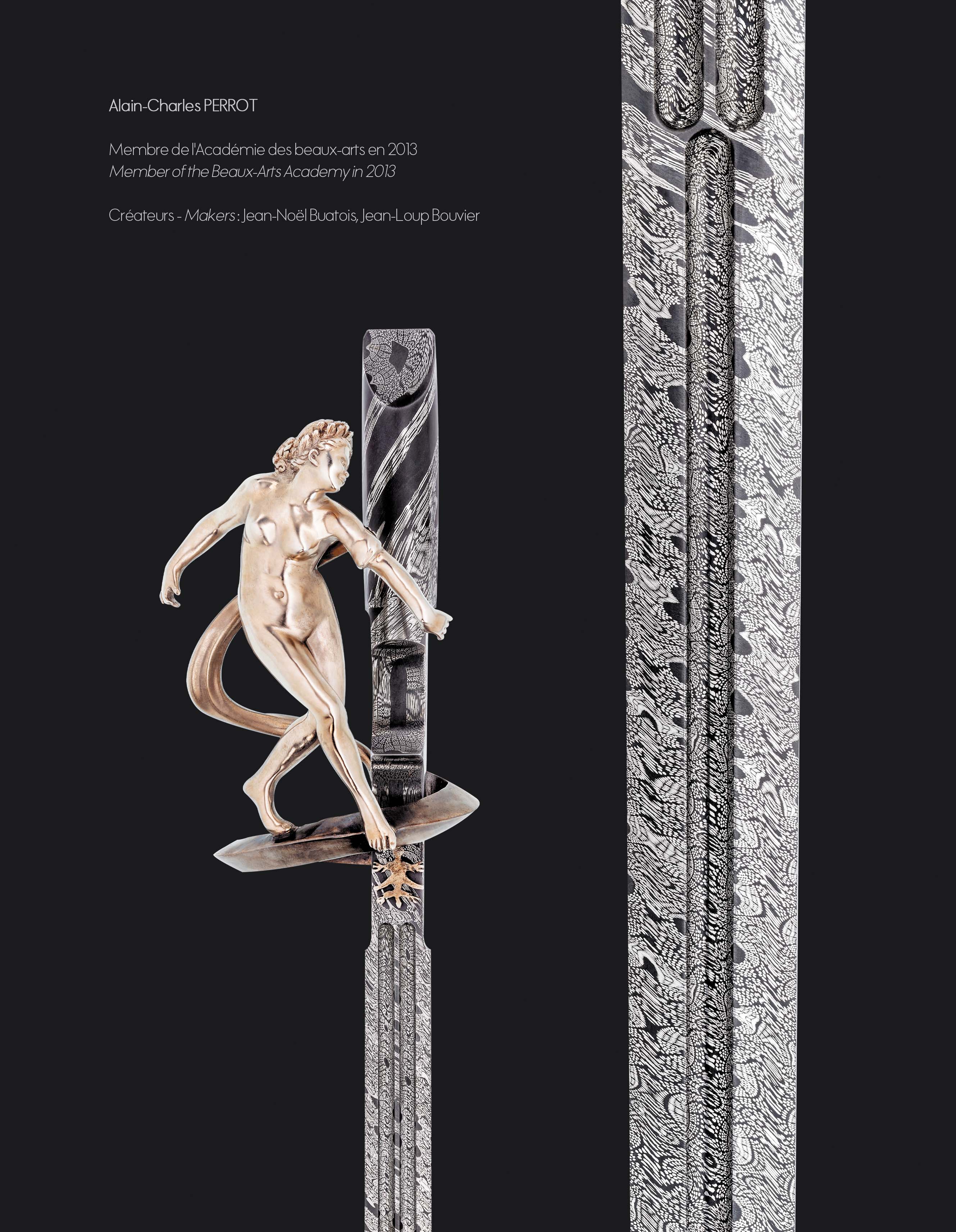 L’épée de l’architecte Alain-Charles Perrot, connu pour ses restaurations du Grand Palais, de l’Opéra Garnier, de la Sainte Chapelle, créée par le forgeron d’art Jean-Noël Buatoi.