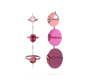 Paire de boucles d’oreilles ornées de rhodolites, rubellites, kunzites et diamants.