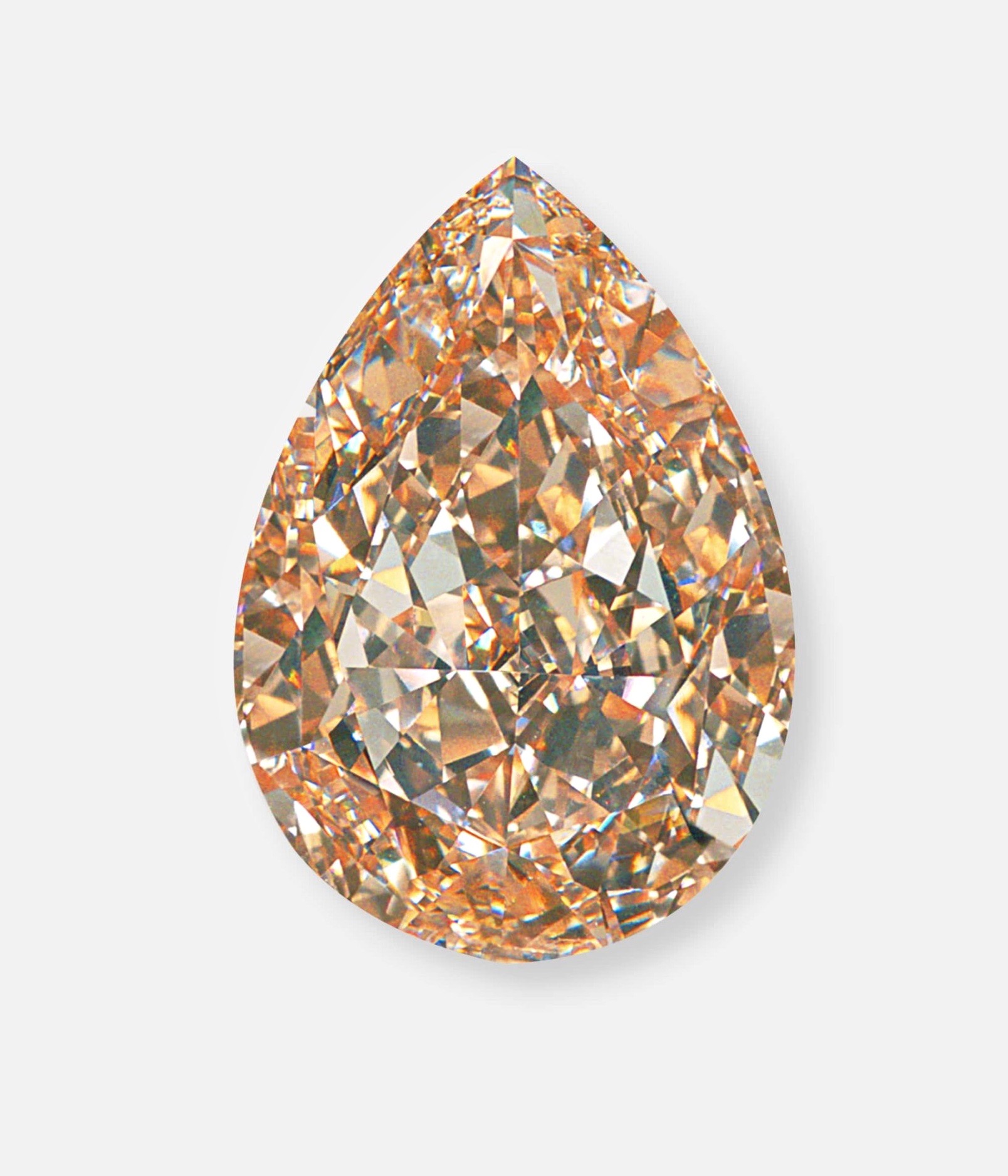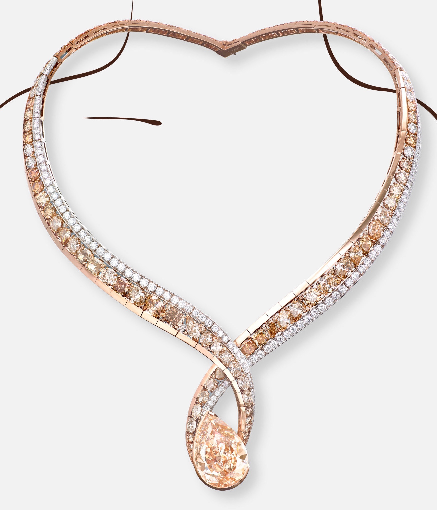 Anna Hu a conçu un collier autour de ce superbe diamant poire brun-jaune de 27,02 carats.