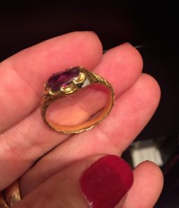 Cependant, ma recherche sur les bagues médiévales, leurs styles et leur contexte historique a été facilitée par ma formation d’historienne de l’art. Pour approfondir un peu plus les techniques du bijou, j’ai suivi une série de cours au GIA (Gemological Institute of America ).