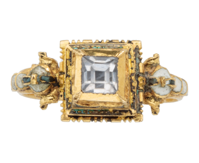 C’est l’un des premiers et plus importants anneaux avec diamants connus. Le diamant lui-même vient des mines de Golconde en Inde.
