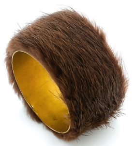 Il y a également ce bracelet de Meret Oppenheim, une pièce unique en fourrure et en métal qui date de 1935 ! Magnifique, mais l’histoire de ce bracelet est triste car de pièce unique, iconique, elle se transforme aujourd’hui en objet de marketing déclinée en rose, bleu, … utilisé par les ayants droit qui lui enlèvent toute sa substance.