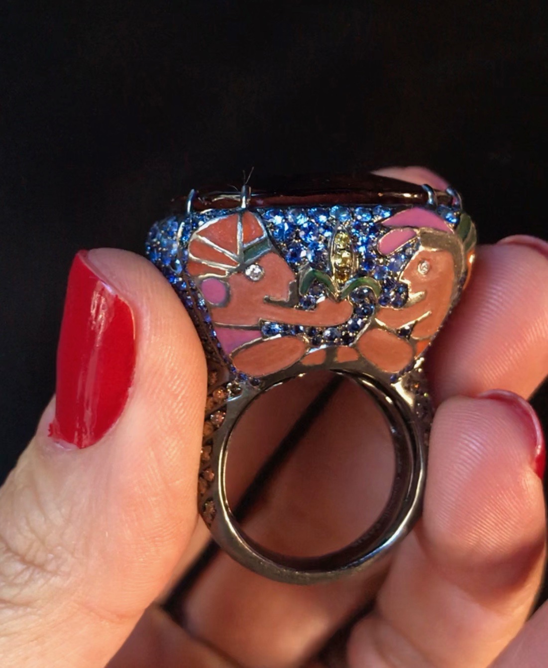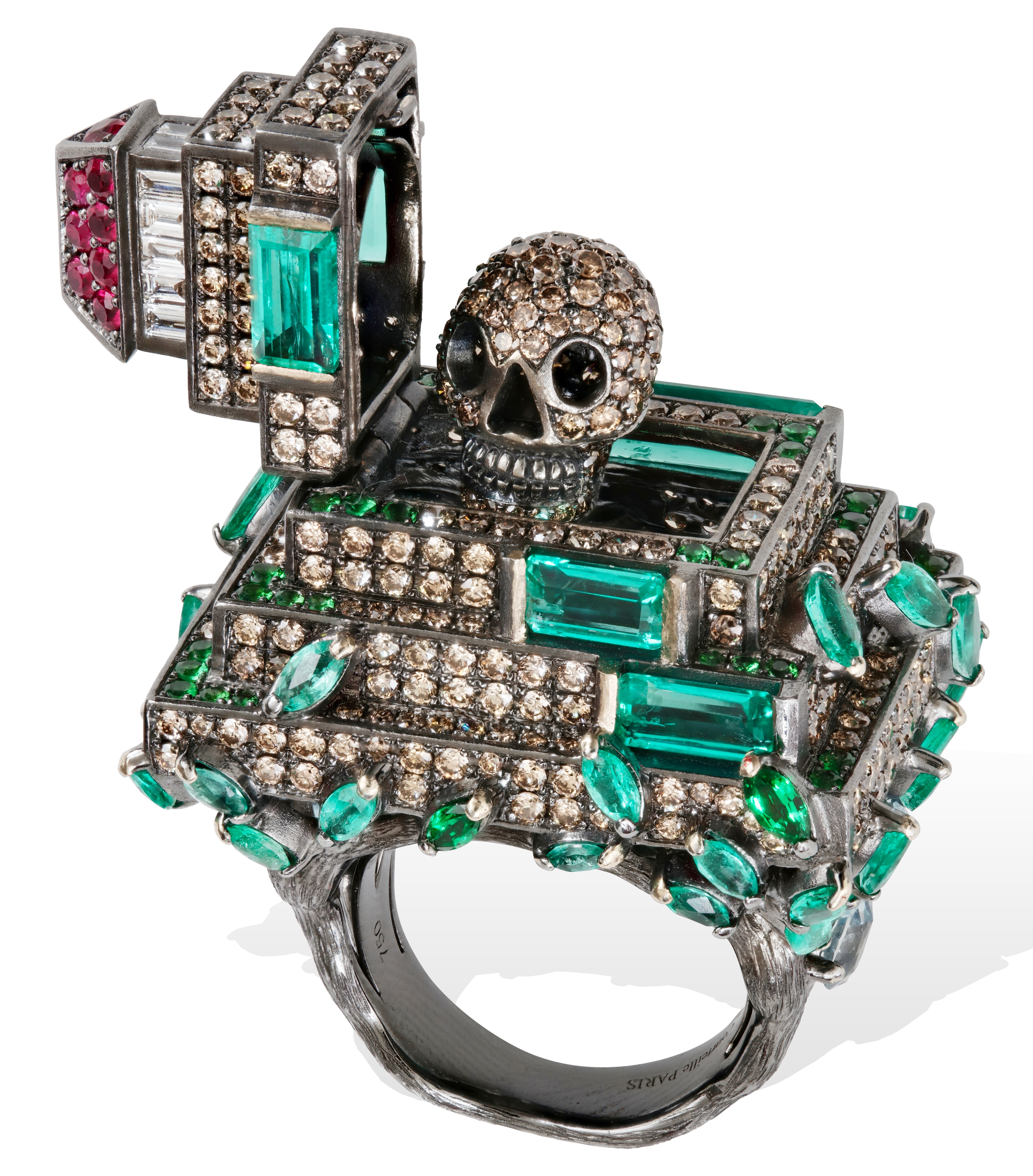 Dans ce contexte, apprécions les ruines des anciens Mayas réinterprétées avec humour. Car elle a le don pour réaliser des bijoux audacieux.