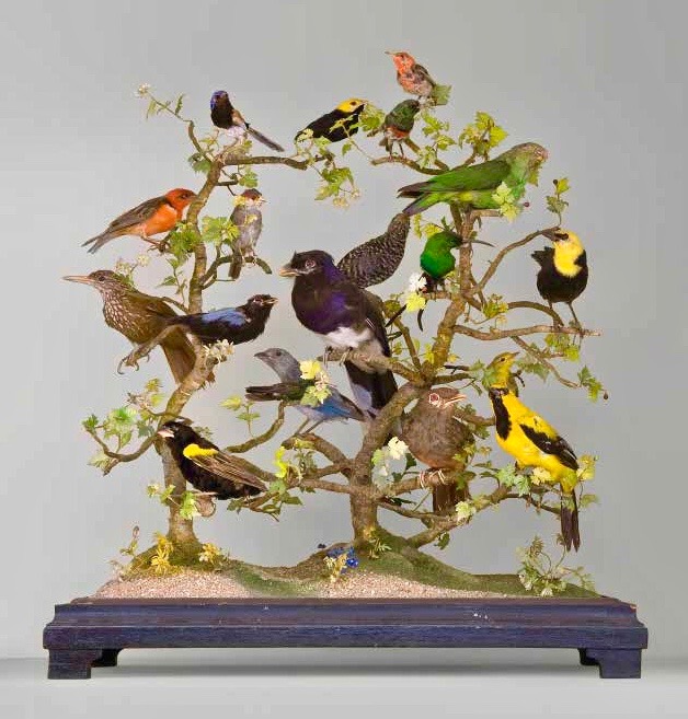 Soulignons que le XVIIIème siècle montre déjà le souhait de faire entrer la nature dans les demeures. Aussi, ce sont les Buissons d’oiseaux qui présentent cette nature. C’est à dire un arbre portant des oiseaux naturalisés.
