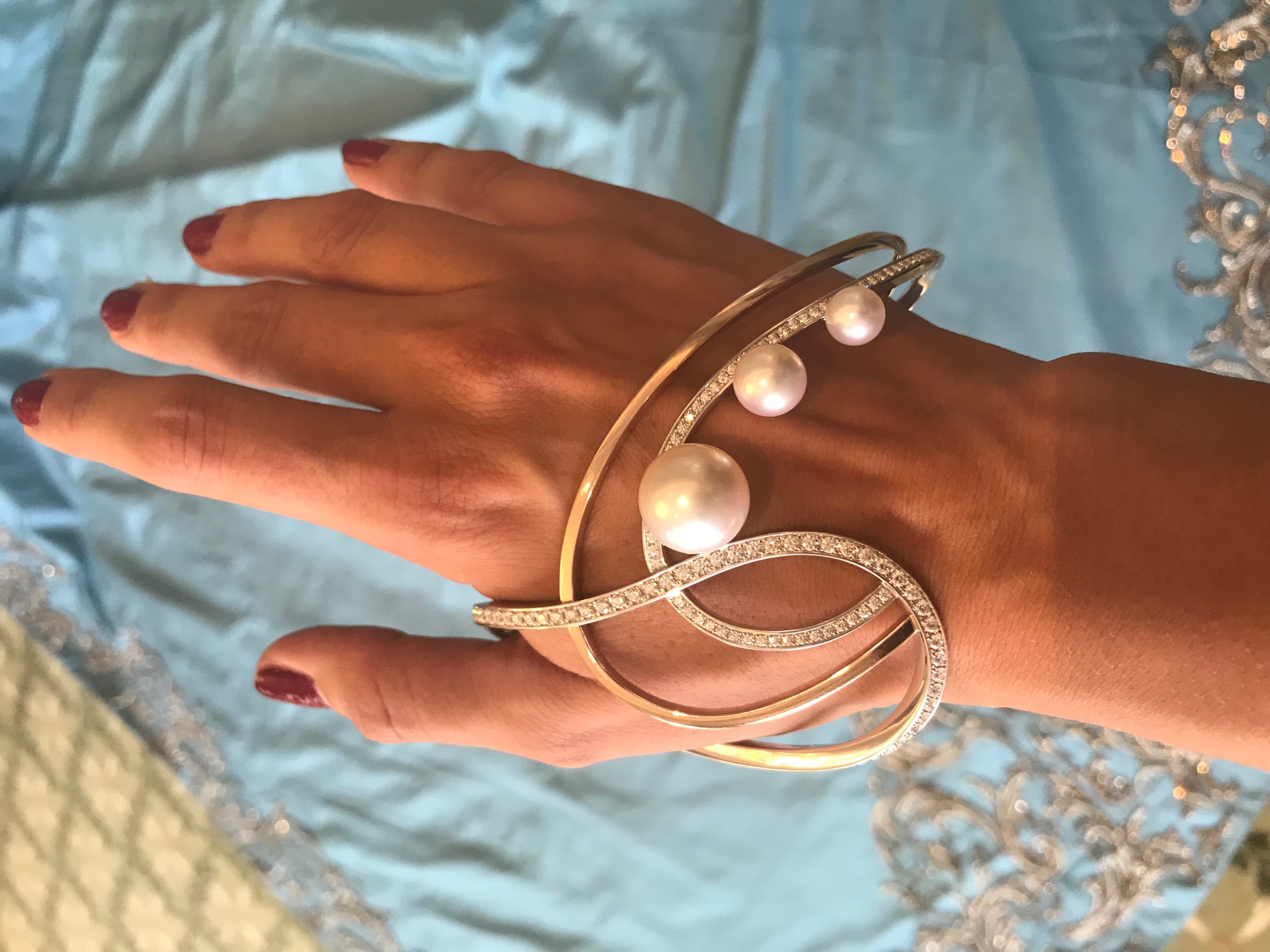 Mentionnons le Jeu de Rubans chez Mikimoto. Le joaillier y présente une magnifique bague ornée d’une perle de conche et de très beaux colliers de perles.