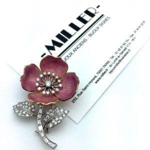 D’autre part, l’émail délicat, presque liquide n’est pas sans rappeler le travail de Fabergé dont Boucheron s’inspire également pour ses broches églantines.