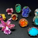 Les pierres précieuses sont quand à elles déterminantes, elles donnent le ton. Gemmes rares et teintes singulières comme l’opale qui ont sa préférence, la diversité des couleurs et le jeu des ombres séduit le créateur. De plus, la technique de l’émail permet également de suivre les tendances internationales du bijoux art nouveau.